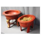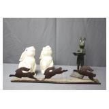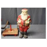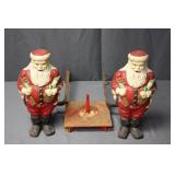 Pair of Santa Claus Andirons & Christmas Tree Base. Santas are 14.5"T