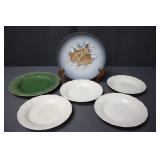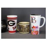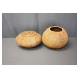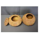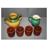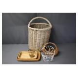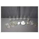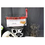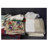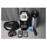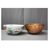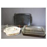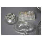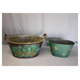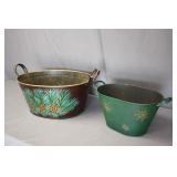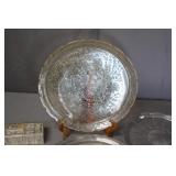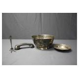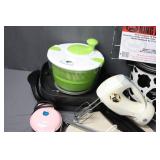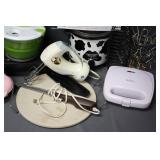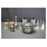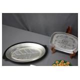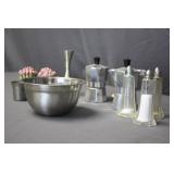 (2) Aluminum Serving Dishes, (2) Flasks, Egg Beaters, & Decorative Towels