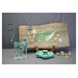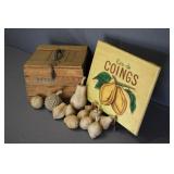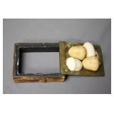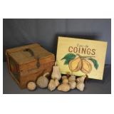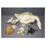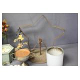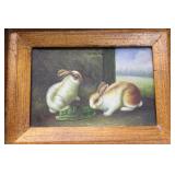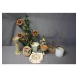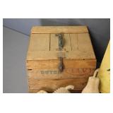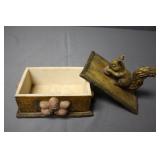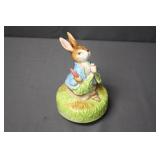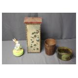 Musical Rabbit Figurine, Wooden Box & (2) Small Metal Buckets