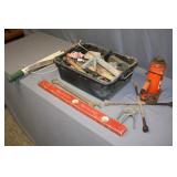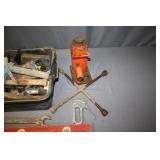 Assortment of Tools. Includes Bottle Jack, Winch, Level, Tire Iron, & More
