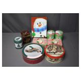 (8) Christmas Cookie Tins & Snowman Serving Tray