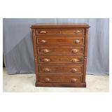 Antique Chest of Drawers with Carved Wooden Handles. 52"T x 44"W x 20"D