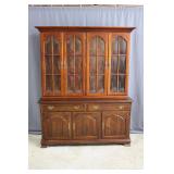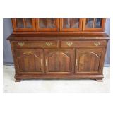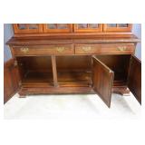 Vintage Wooden China Cabinet with Brass Handles, Has Minor Wear. 78"T x 62"W x 20"D