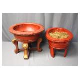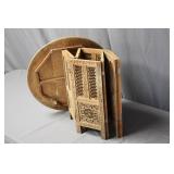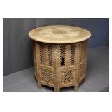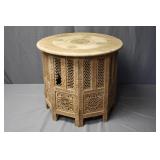 Oriental Carved Wood Octagonal Folding Base Side Table. 18.5"T x 20.5"W