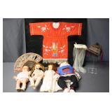 Oriental Dolls, Hats, Fan, & Hanging Child's Dress