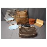 Assorted Purses & Jewelry Bags & Hanging Mirror