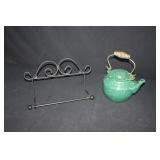 Enamelware Tea Kettle and Small Hand Towel Rack