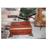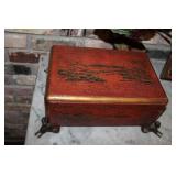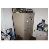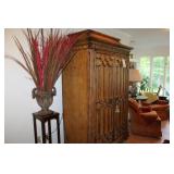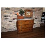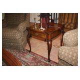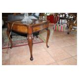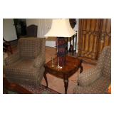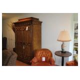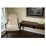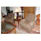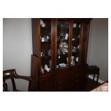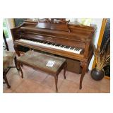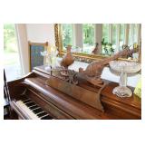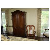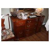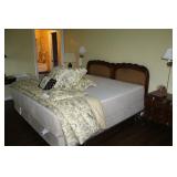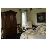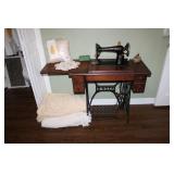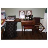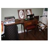 FURNITURE: Large Baker Coffee Table w/Scalloped Wood & Glass Top, King Sized Bed with Tempur-pedic Mattress (Like New), Hekman Sofa Table with Two Matching End Tables, M.W. Knabe Piano, Two Sets of Club Chairs, Antique Dining Table with Six Chairs, Antique China Cabinet and Matching Buffet, Large Hekman Curio Cabinet, Breakfast Table & Chairs with Matching Barstools, Breakfast Room Hutch (Mid-Century), Chaise Lounge, Petit Ladies Armoire, Two Antique Singer Sewing Machines (one with cabinet and stool; one with working treadle), Outdoor Cast Aluminum Furniture, Wing Back Chair with Matching Ottoman, Antique Marble Topped Wooden Chest, Wooden Asian Styled Armoire w/Pagoda Top, High End (Floyd Evans) Wooden Game Table with Pull Out Drawers & Four Matching Chairs with Leather Seats and Rollers, Two White Refrigerators, etc.