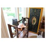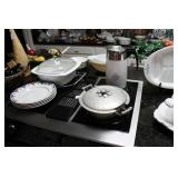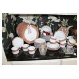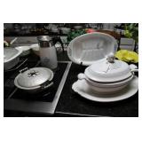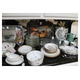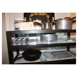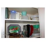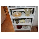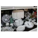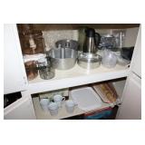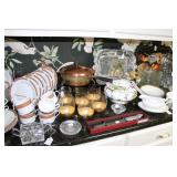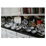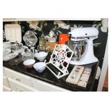 KITCHEN ITEMS & APPLIANCES: Vintage Pyrex Mixing Bowls, Vintage Barware, Serving Dishes and Trays (Pewter & Silver Plated), Placemats & Napkins, Vintage Copper Molds, Old Demi-tasse Cups (Great for Children's Tea Parties!), Vintage Stainless & Black Cannisters, Baking Pans, Small Appliances, Gabbay China (58 pc.), Nitto "Heather" Stoneware, White Kitchen Aid Mixer, Tons of Utensils, etc.