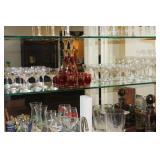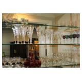 GLASSWARE & CHINA: Royal Doulton "Hamilton" China, Several Sets of Waterford Stemware, Fostoria, Crystal, Cut Glass, etc.