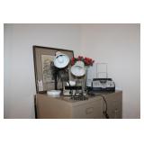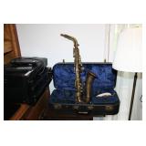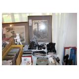 MISCELLANEOUS: Brinkmann Gas Grill, Tools, Backpack Blower, Weed Eater, Lawn Mower Trailer, Pots, Folding Tables, Plants, Plastic Shelving, Linens, Holiday Items (Entire Room) (Halloween, Thanksgiving, Christmas, St. Patty's Day, Easter, Mardi Gras, 4th of July), Like New Christmas Tree (lighted), Theodore Alexander Decorative Box, Electronics, Art, Televisions, Vintage Kodak Cameras, Conn Alto Saxophone with Original Case, Accessories, and Key with Mother of Pearl Keys (Very Old/Approx. 1930), Glen Gore Art, Candles, Brass, Three Guitars (Acoustic), Music Stands, Costume Jewelry, Women's Clothing, Tons of Bud Vases, Books, CD's, Puzzles, Lamps, Plastic Storage Bins, etc.