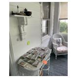 Contence of elderly gentlemans estate being sold for first time in over 30 years, as he moves out of state. Gentleman was a collector of antiques, collectibles, primitives and more. Items being sold are attic to basement, including garage. Items include, but are not limited to: primitives, hooked rugs, braided rugs, collectable glassware and china, tins, colored Portland glass, clocks, and old post cards, butter churns. Additional notable items include large snow blower, honda lawn mower, 2 patio sets, whicker sunroom furniture, tools and old stanley advertisitng tool display, and much more.