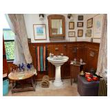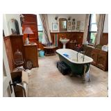 Heywood Wakefield Mid Century Desk, Antique Oak Round Claw Foot Table, Blanket & Storage Chests, Antique Full Size Wrought Iron Bed, Victorian Three Drawer Chest, Painted White Armoire, Secretary, Wood Desk, Buffet, Antique Sheet Music Cabinet, Sofa, Glass Top Coffee Table w/Wrought Iron Legs, Glass Top Display End Table, Tall Painted Wood Pantry Cupboard, Bent Wood, Pair Windsor Back w/Rush Seats & Wrought Iron Ice Cream Parlor Chairs, Tons Brass Ware, Framed Art Work (Lawrenceville Doughboy, St Augustine Church, West End Underpass, Pittsburgh Skyline) Including Signed Prints, Oils, Water Colors & Unusual Nail Art, Featuring Local Artists Bat, James P. Nelson & Martha Fairchild, Framed Red Elvises Russian Rokenrol Revolution Advertising Poster, Signed Studio Art Glass & Pottery, Many Porcelain & Glass Figurines, Paper Weight Collection, Pair Clear Elegant Glass Figural Vases, Many Mirrors – Some Classic, Many Cat & Bunny Rabbit Items, Syracuse Dinnerware Set, Crystal Stemware, Assorted Plate Ware, NutriBullet – NIB, Shark Steam Mop – NIB, Dyson Hot & Cool – NIB, Vintage Perfume Bottles Including Miniatures, Ladies Compacts, Costume Jewelry, Ladies Clothing & Accessories Including Purses, Shoes, Belts, Hats, etc., Linens – Old & New Including Quilts, Chenille Bedspread, Vintage Cotton Table Cloth w/Poodle Design, Pair New Black Waterford Throw Pillows w/Tags, etc., Sewing Notions, Foreign Coins, Pair Clear Glass Horse Head Bookends, Books Including Abby Hoffman’s 1st Edition “Steal This Book” Paper Back, CD’s & DVD’s, Paper Ephemera Including Post Cards, Antique Wood Fruit Crate Labels, Trade Cards, Underground Comics, etc., Flat Screen TV & Other Electronics, Tracfone – NIB, Very Unique Antique Metal Gold Stencil Fancy Gun Powder Advertising Display Bin, Pocket Knives, Miniature Toy Cars, Large Vintage Chalkware Wall Hanging Indian Maiden Figurine – As Is, Vintage & Art Glass Lamp Shades, (2) Chimney Caps, Antique Stain Glass Transom – Mint Condition, Vintage Pin Back Buttons, Advertising Tins Including Blue Star Potato Chips, Bread Box, etc., Medicine Bottles, Vintage Poodle Figurines, Pair Cracker Jack Games, Antique Metal Blade Fan, Velvet Pickelhaube Spiked Military Helmet, Numerous Vintage Wood Medicine Cabinets, Art Deco Leopard Celluloid Shelf Clock, Brown Bakelite Cathedral Shaped Electric Shelf Clock, Vintage Moon Mullins Comic Strip Character Wood Wall Hanging, Antique Bird Cages Including Brass, Free Standing & Wood, Cast Iron Wolf Head & Bull Dog Door Stops, Vintage Transistor Radio, Antique Advertising Seltzer Bottle, Vintage Christmas Ornaments, Multi Colored Filament Light Bulb, (2) Dog Crates, Dorm Refrigerator, Primitive Tool Box, Mac Truck Mirror Cover, Large Vise, Wrought Iron Patio Set, Painted Blue Wicker Chairs & Table, Many Pots & Planters
