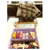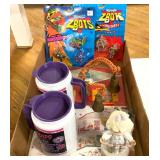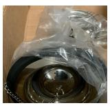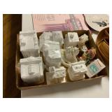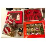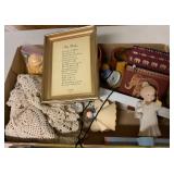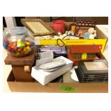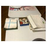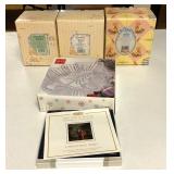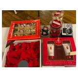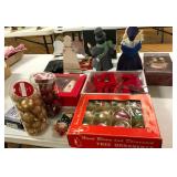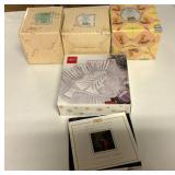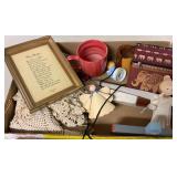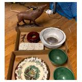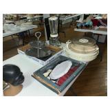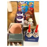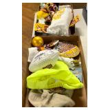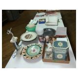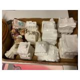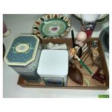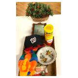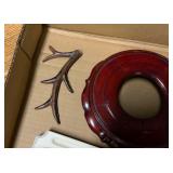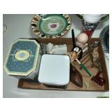 Boxes of Napkin Rings, square vase, decorative basket, decorative medallions, Cover for Platter