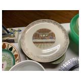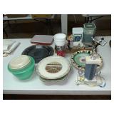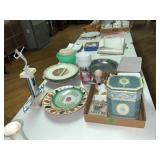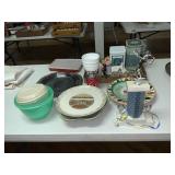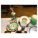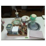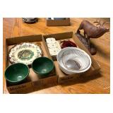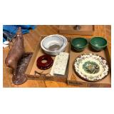 Bowls, Decorative plate marked Leeds, 2 Green Bowls made in France, Decorative desktop organizer