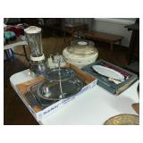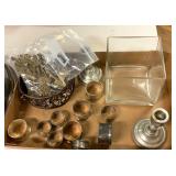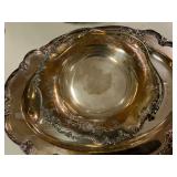 Misc Silverplate serving tray, bowl, cruet set w/damaged cruets