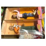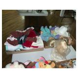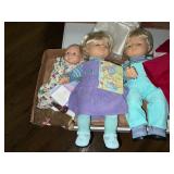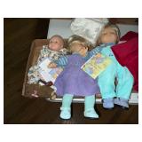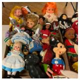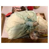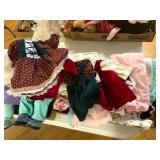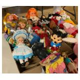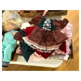 Lot of various styles and sizes of Vintage dolls and a box of clothes for smaller ones