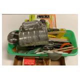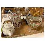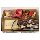 Box of Kitchenware- Serving Pitcher, cocktail shaker, Syrup pitcher