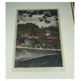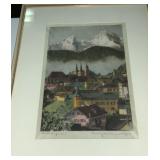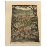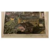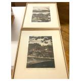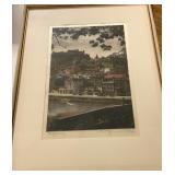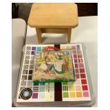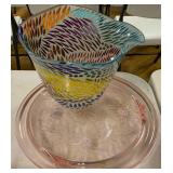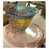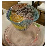 Box of Misc Tea Sets (Not Complete) Footed Glass Cake Plate, Signed Glass Artwork