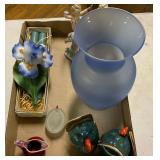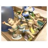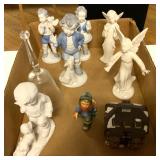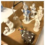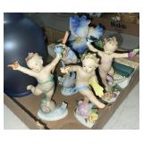 Shot glasses (6), Creamer w/cups, Vase, Figurines, Capodimonte Floral Decor etc