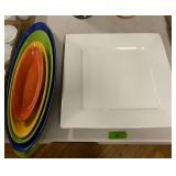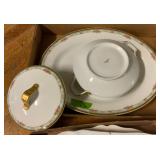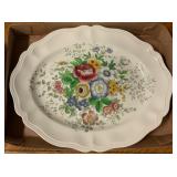 Set of Serving Dishes (banana boat), white platter and 2 vases