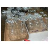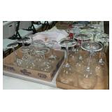 3 wine glasses with etched design, 8 tall wine glasses, and 4 medium height. Tallest measures 11 in Tall