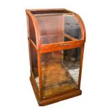 Large selection of furniture including cherry highboy, lowboy, 2 gate leg tables, ladies desk, poster queen bed, and chest. Antique and vintage furniture including cherry baker’s cabinet, cherry chest, bowed top umbrella display cabinet, dough and sugar boxes.