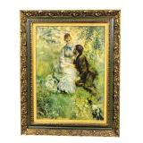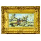 Numerous framed artwork including oils, acrylics, and prints. Chippendale and other mirrors. Ornate Sheffield coffee/tea set, 177 pieces of Blue Danube china, blue & white Asian porcelain, Royal Daulton china, Waterford and other crystal, Delf pottery, and oyster plates.