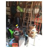 10am Sunday begin 50% discount on all items over $1.00 Refrigerator, Mission bookcase, Antique Hoosier kitchen cabinet, small glass top kitchen table and 4 ladder chairs, full antique bed, roll top desk, bookcases, Piano, marble top lamp & coffee tables, white wicker chest, day/trundle bed, dining room table & chairs, china cabinet, small antique chest, 2 cedar chests one mid century, antique child table desk & chair, over size chair with ottoman, sewing machine in cabinet, 2 antique school desk, flexsteel sofa, treadle sewing machine frame with glass top Quilts, linens, kitchen ware, corning ware, china, crystal, dishes, sewing notions, Books, Antique wall telephone, Precious moments, office supplies, Christmas & Holiday decorations, lamps, Wall mirrors and pictures, electric fans, luggage, bath accessories, stain glass, cameras, vintage quilts and linens, electronics & televisions, stain glass windows, small kitchen appliances, office supplies Men's clothes, shoes, ties, Western boots, jewelryGarage: full of stuff, tools, plants & garden, wind chimes, bbq grill, power tools and hand tools