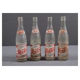 Four (4) Glass 10oz Pepsi-Cola Bottles. 9.5" Tall.