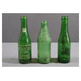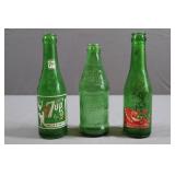 Three (3) Glass Bottles - Two (2) Seven Up & One (1) Mellow Yellow. 8" Tall.