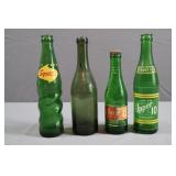 Four (4) Various Glass Bottles. Tallest Bottle is 10" Tall.