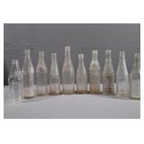 Ten (10) Various Glass Bottles. Tallest Bottle is 10" Tall.