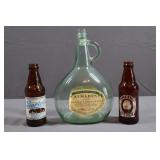 Three (3) Various Glass Wine & Beer Bottles. Tallest Bottle is 11" Tall.