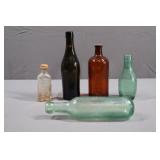 Six (6) Various Glass Bottles. Tallest Bottle is 11" Tall.