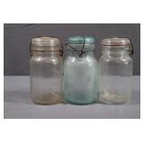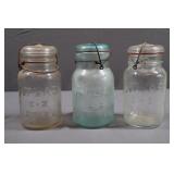 Three (3) Atlas E-Z Seal Jars . 7.5" Tall x 4" Diameter.