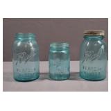 Three (3) Ball Perfect Mason Jars. Tallest Jar is 7" Tall.