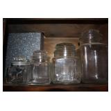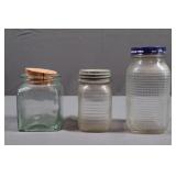 Three (3) Various Glass Jars. Tallest Jar is 7" Tall.
