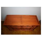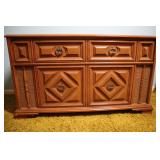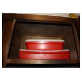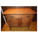 Small Wooden Two (2) Drawer Storage with Shelf.