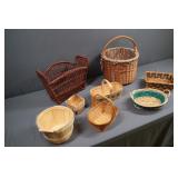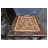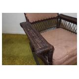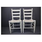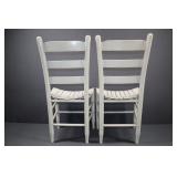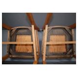 Two (2) Wooden Side Chairs with Wicker Seat and Cushions.