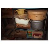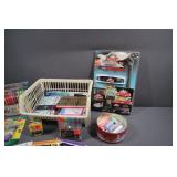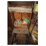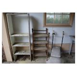 Miscellaneous Lot of Storage Racks and a Junior Weight Bench.