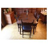 Wooden Dinning Room Table with Leaf and Six (6) Side Chairs.