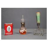 Miscellaneous Lot of a Prince Albert Can, Oil Lamp, and a Potato Masher.