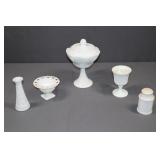 Assorted Lot of Five (5) Milk Glass Style Pieces.