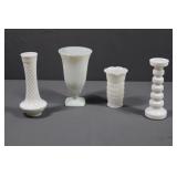 Assorted Lot of Four (4) Milk Glass Style Vases.