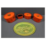 Lot of Four (4) Canisters and The Lovin' Oven Metal Serving Tray.