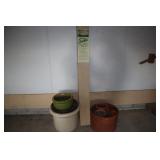 Siesta Deluxe Cotton Rope Hammock with Clay and Plastic Flower Pots.