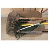 Miscellaneous Lot of Lawn and Garden Tools with Wheelbarrow.