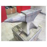 Blacksmith Anvil, 130 Lbs., 21.5"×4"× 11.25", Base is 22"× 20"× 17" Bottom of Horn was welded. Very Collectable Vintage Piece!! N/ S
