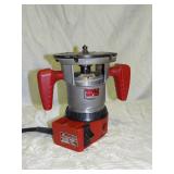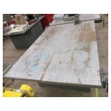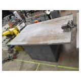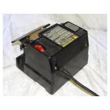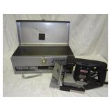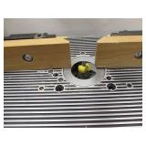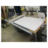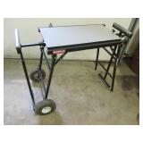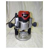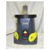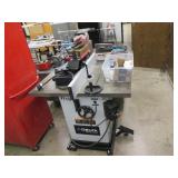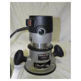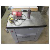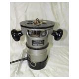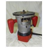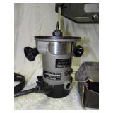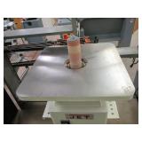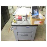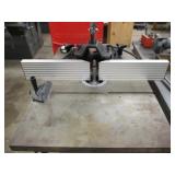 PORTER CABLE HEAVY DUTY ROUTER (TESTED AND WORKING) #1001 WITH FIXED BASE, MOUNTED IN A BENCH DOG PRO TOP PORTABLE ROUTER TABLE WITH 22 INCH DUAL POSITION FENCE, 2 1/2 INCH DUST PORT AND AN ALUMINUM MITER ACCESSORY TRACK. 24 INCHES BY 16 INCHES BY 20 INCHES TOP HAS A SMALL CRACK IN THE LAMINATE. COMES WITH A TABLE 3 FOOT BY 2 FOOT BY 3 FOOT ON 3 INCH CASTERS AND A POWER STRIP. NO SHIPPING